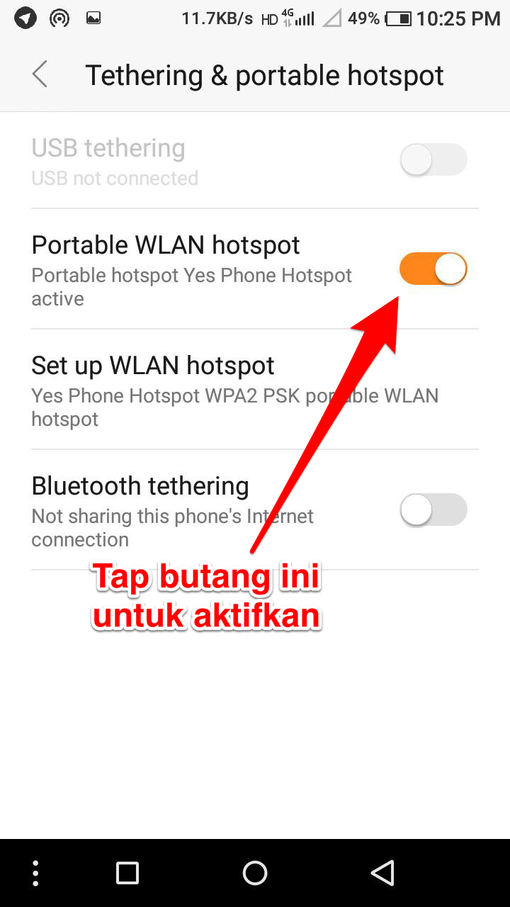 Cikgu boleh tap untuk hidupkan fungsi Hotspot cikgu ... malah cikgu boleh gunakan Bluetooth untuk sambungan lebih selamat